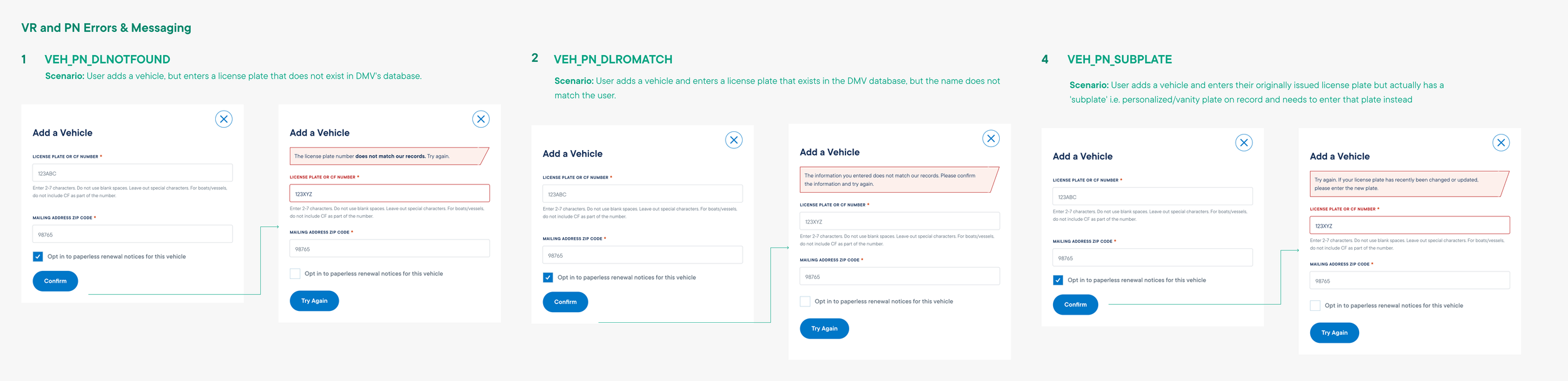 Given the size and scope of MyDMV, we couldn’t design every surface at once. We intentionally started with the Add Vehicle flow because it represented the most complex entry point into the platform. Unlike IDs or driver licenses, where users typically manage a single asset, vehicles introduce multiple assets per user, each with different states, timelines, and actions. That variability made this flow the best place to establish durable system rules.
