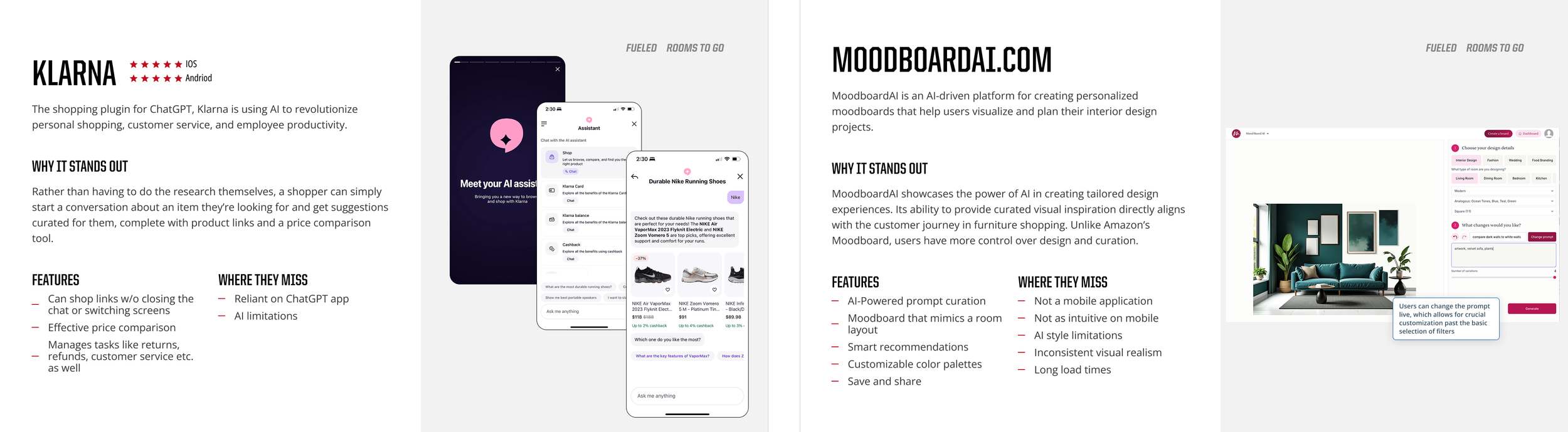We began by looking beyond our category, studying how AI was being used in adjacent industries to uncover useful patterns and design metaphors. This helped frame what “smart” could feel like in a furniture shopping context.