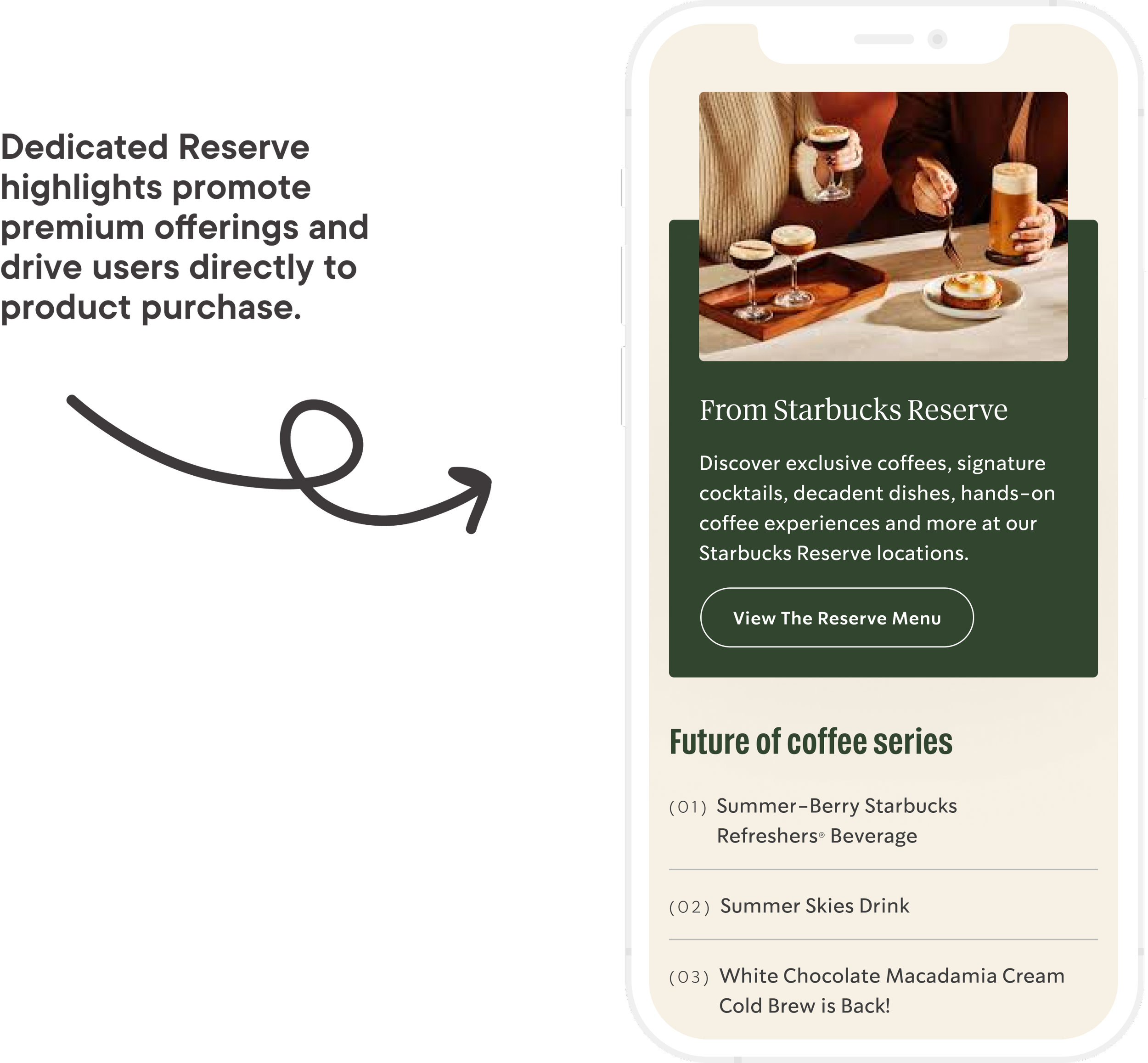 I introduced topical rivers with supporting highlight cards to guide readers into timely content while ensuring evergreen brand stories never got buried. This structure reduced editorial overhead and gave Starbucks a repeatable way to balance business priorities with audience interest.